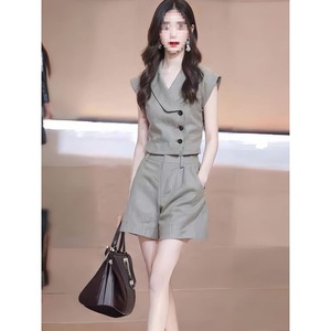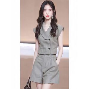今年流行又a又飒不规则马甲短裤套装2025夏季时尚气质穿搭7305