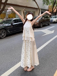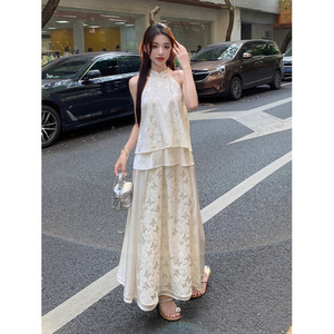 新中式国风旗袍清冷感禅意穿搭一整套挂脖上衣半身裙子套装女夏季