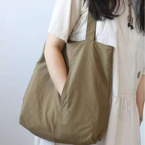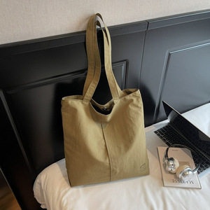 日系复古防水轻便购物袋尼龙布大容量单肩托特包多口袋通勤腋下包