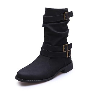 36-43码 大码女靴42欧美皮带扣短靴女41秋冬切尔西靴中筒堆堆靴子