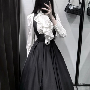 2025新款黑鸢尾lolita背带sk神久夜哥特风灯笼袖长袖衬衫两件套装