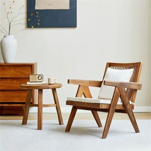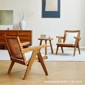 わびさびスタイルの古いニレ材のレジャーチェア屋外中庭ティーチェアホームバルコニー背もたれ椅子リビングルームアームレストリクライニングチェア
