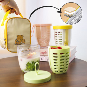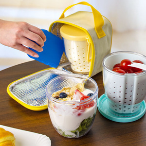氷の結晶で保冷できるフルーツカップ アウトドアピクニック 夏用テイクアウトピクニックフルーツカップ 二層排水オートミールカップセット