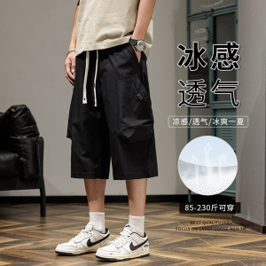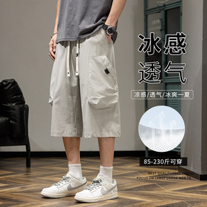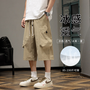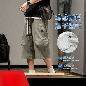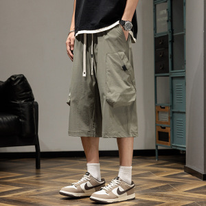 人気の既製作業服速乾クロップドパンツメンズ夏薄手ゆったりカジュアルアメリカンスポーツ大きいサイズショートパンツ