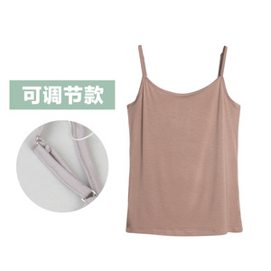 女性用の小さなキャミソール、ショートモーダル黒と白のスリムフィットトップ、外側と内側に調節可能な薄い高弾性夏