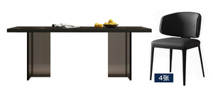 意式极简岩板亚克力餐桌挂黑色桌椅悬浮小户型家用简约轻奢的餐桌
