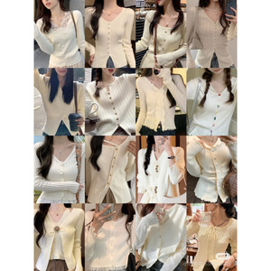 濮院秋冬季针织开衫女士上衣毛衣女浅米色显瘦软糯十三行女装批货
