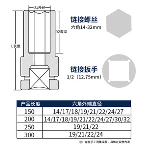 1/2电动扳手套筒气动加长六角套头锂电动扳手架子工扳手套筒风炮