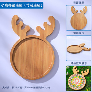 竹质杯垫餐垫创意DIY手工材料底胚儿童托盘马赛克制作方圆形底座