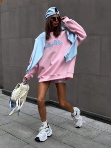 クロスボーダーカジュアル新しいスタイルのルーズ長袖レディースホットガールラウンドネックプリントレイジースタイルミッドレングスプルオーバースウェットシャツ