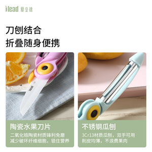 爱立德多功能水果刀折叠陶瓷刀具家用不锈钢削皮刀便携卡通小鸟刀