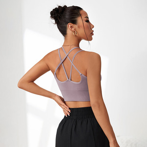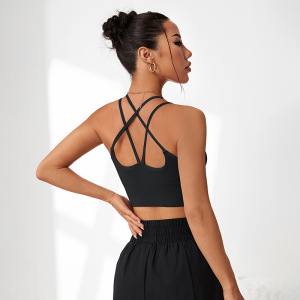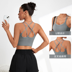 跨境健身透气瑜伽含胸垫款聚拢文胸内衣女士外穿运动背心健身文胸