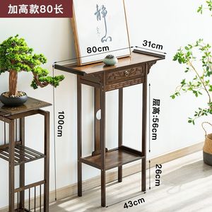 フラワースタンド収納ラックバルコニーエンドビューフラワーテーブル新中国風玄関リビングルーム床置き無垢材ライト高級棚玄関机