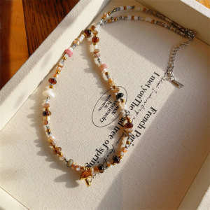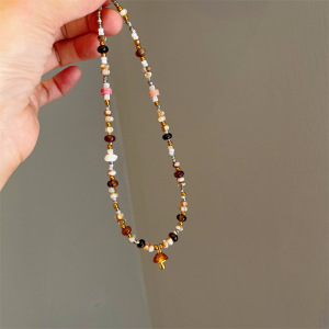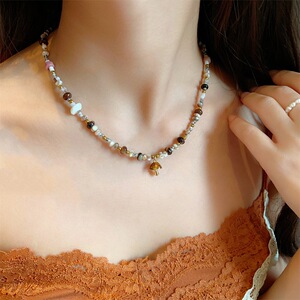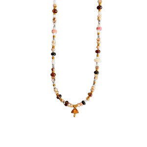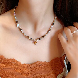 复古美拉德色串珠虎眼石蘑菇吊坠项链女款2025秋冬新款贝壳锁骨链