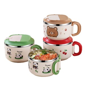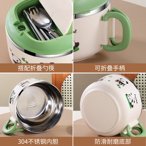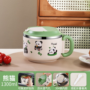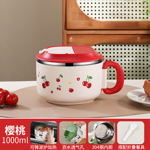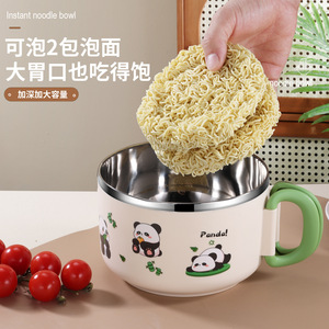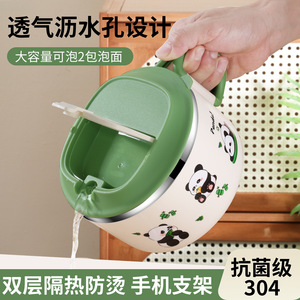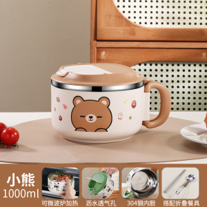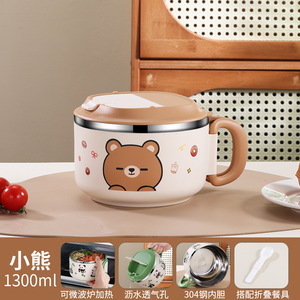 乐美304不锈钢泡面碗学生宿舍卡通大容量泡面杯折叠手柄带盖汤碗