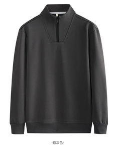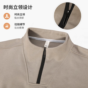 卫衣跨境定制logo字刺绣长袖立领团队服厂家半门襟拉链短立领卫衣