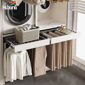 洗衣机抽拉衣架阳台上方隐形晾衣架伸缩滑轨裤架置物架收纳挂衣架