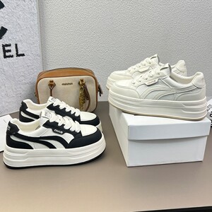 真皮厚底小白鞋女松糕底休闲板鞋2025新款软底轻便经典熊猫色单鞋