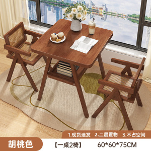 【1桌2椅-藤编款】胡桃色80*60*75cm