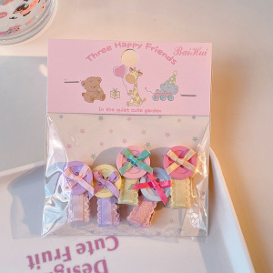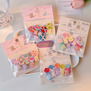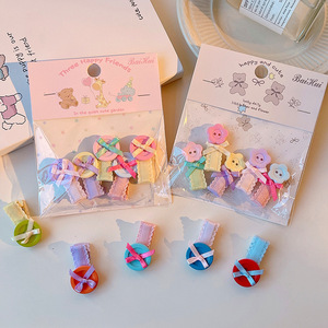 韩系儿童蝴蝶结纽扣造型发夹女童彩色波点侧边夹宝宝刘海碎发夹子