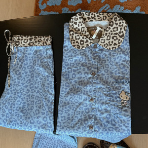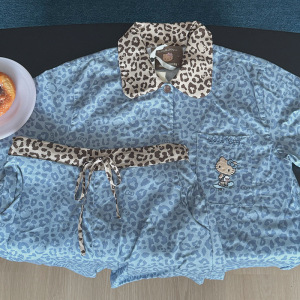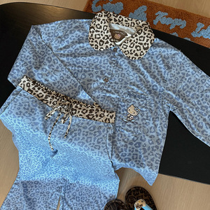 野家同款蓝色豹纹莱赛尔天丝春夏睡衣女2025新长袖长裤套装家居服