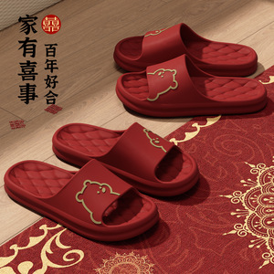 洁丽雅婚庆结婚拖鞋女款夏季2025新款情侣夫妻防滑拖鞋男士