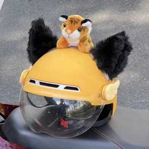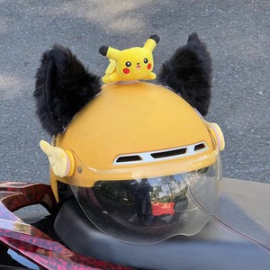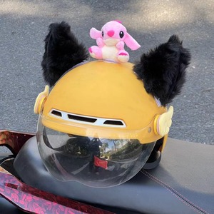 美团外卖小公仔机车电动车头盔加菲猫个性猫耳朵滑雪可爱呆萌公仔