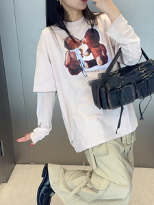 25SS YBオープン/ニッチデザインAC初秋レトロ柄ダメージプリントフェイクツーピース長袖から始まる/ 90% off