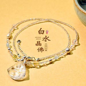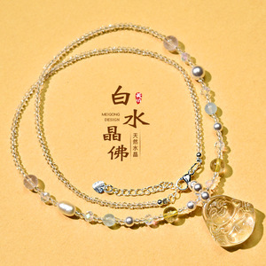天然水晶项链佛公净体透明锁骨链平安时尚女士吊坠白水晶项链批发