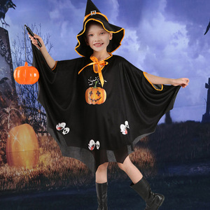 跨境儿童服装女巫新款披风服饰万圣节斗篷帽子角色扮演南瓜演出服