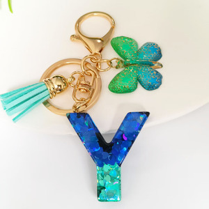 クロスボーダーブルーシリーズ 26 ドロップレターキーホルダー休暇愛タッセルアクセサリーグラデーションバタフライキーホルダー