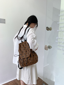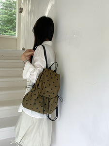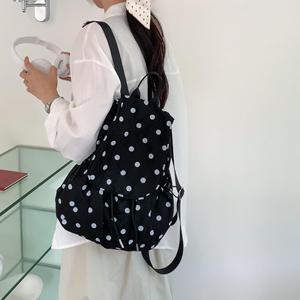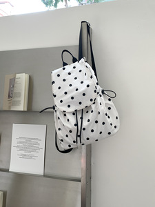 2025 トレンディなカレッジ韓国スタイルのバックパック綿日常旅行スクールバッグフリップ巾着カジュアル水玉バックパック女性のための