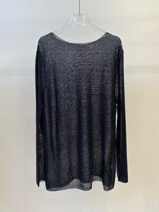 早秋新款一字领微透亚麻天丝针织衫长袖薄款慵懒风宽松上衣罩衫女
