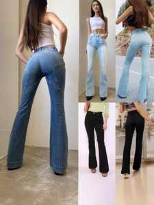 亚马逊欧美跨境复古牛仔裤女式2025秋冬新款弹力修身微喇叭裤长裤