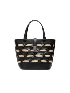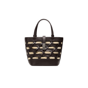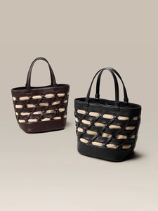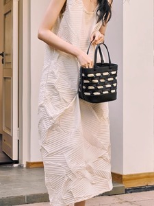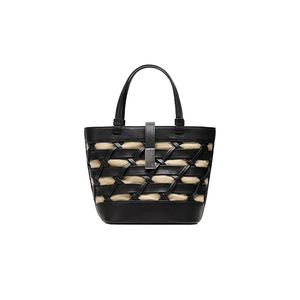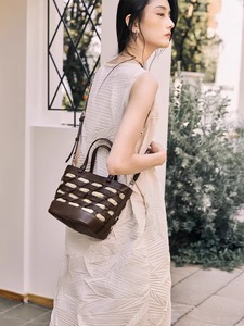 裘真植鞣牛皮菜篮子编织包女手提单肩斜挎沙滩包大容量通勤水桶包