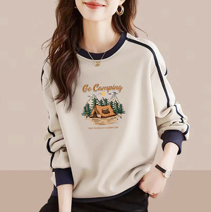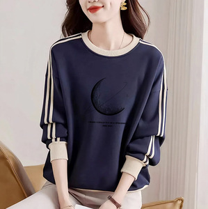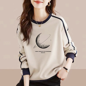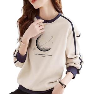 大牌剪标外贸出口纯棉长袖拼色卫衣女春秋款显瘦文艺减龄印花上衣