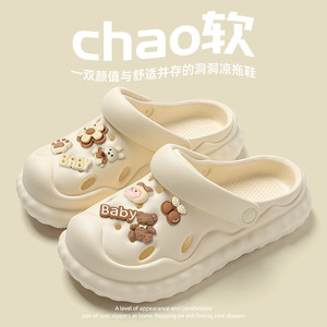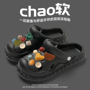 外穿洞洞鞋女夏季可爱厚底增高防滑两穿包头踩屎感凉拖鞋女款百搭