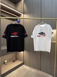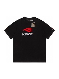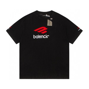 跨境巴黎高版本B家新款3M刺绣短袖T恤定织定染版型OS宽松版型男女