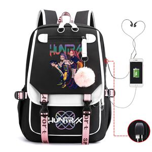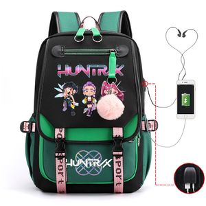 KPop恶魔猎人书包青少年女孩USB充电青少年学校书包2025影迷礼物