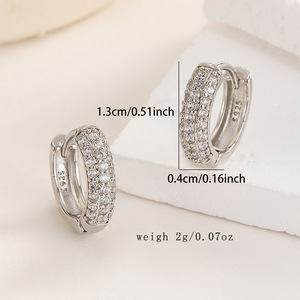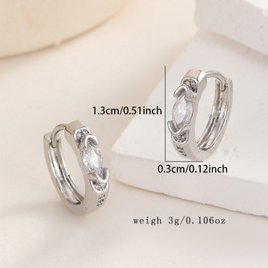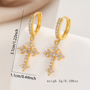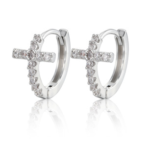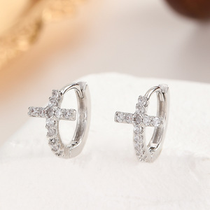 韩版精致电镀白k超闪镶锆石耳扣少女气质百搭甜酷风十字架铜耳圈