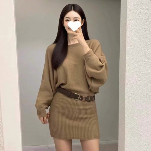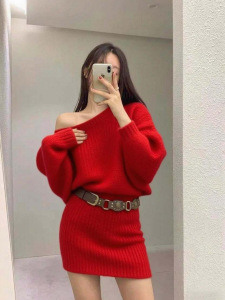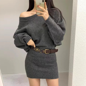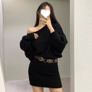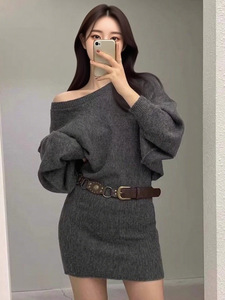 奢缇家2025年外贸长款慵懒跨境针织连衣裙套头半高领打底衫毛衣女