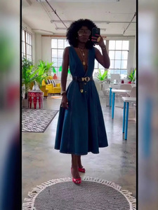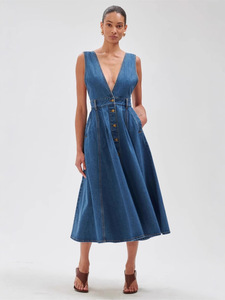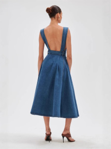 ヨーロッパとアメリカの女性のディープ V ドレス Amazon クロスボーダー女性の夏のファッションセクシーなバックレスデニムスカートベルトなし