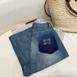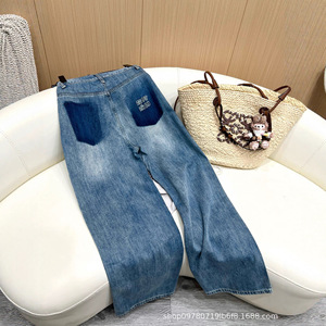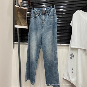 【不支持退货】25s缪系高腰直筒洗水加长牛仔裤女