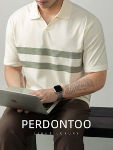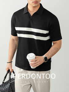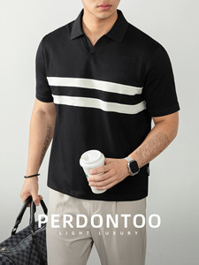 高端海鸥领速干棉商务POLO衫男士短袖夏季2025条纹休闲透气保罗衫