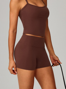 クロスボーダーヨーロッパとアメリカの起毛タイトヨガショーツ女性のハイウエストおなかコントロールフィットネスパンツヒップリフティングランニングスポーツショーツ 8519