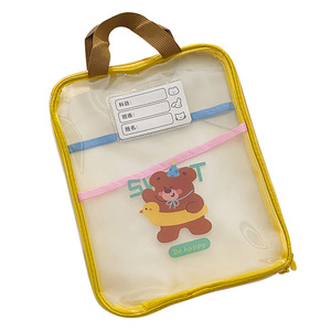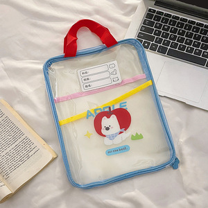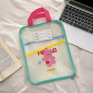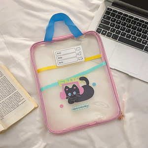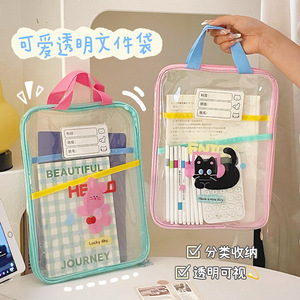 办公资料文件袋透明网纱便携手提袋大容量学生试卷三层分类收纳袋