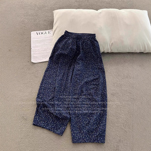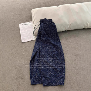 夏日推荐!欧货时尚藏蓝小碎花休闲抽绳显瘦高腰阔腿哈伦短裤子女