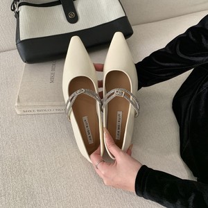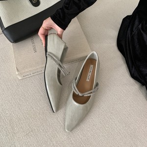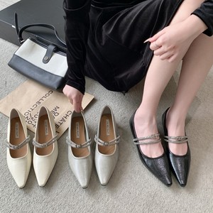 原创水钻内增高尖头浅口单鞋女2025秋季新洋气一字带低跟玛丽珍鞋