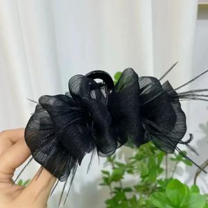 小版型羽毛抓夹气质优雅自带氛围感仙气发夹网纱13cm鲨鱼夹