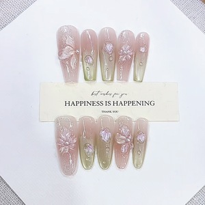 Nai Zi 手作りウェアラブルマニキュア夏の新しいスタイルの花と夢手描き彫刻気質キャットアイマニキュアパッチ